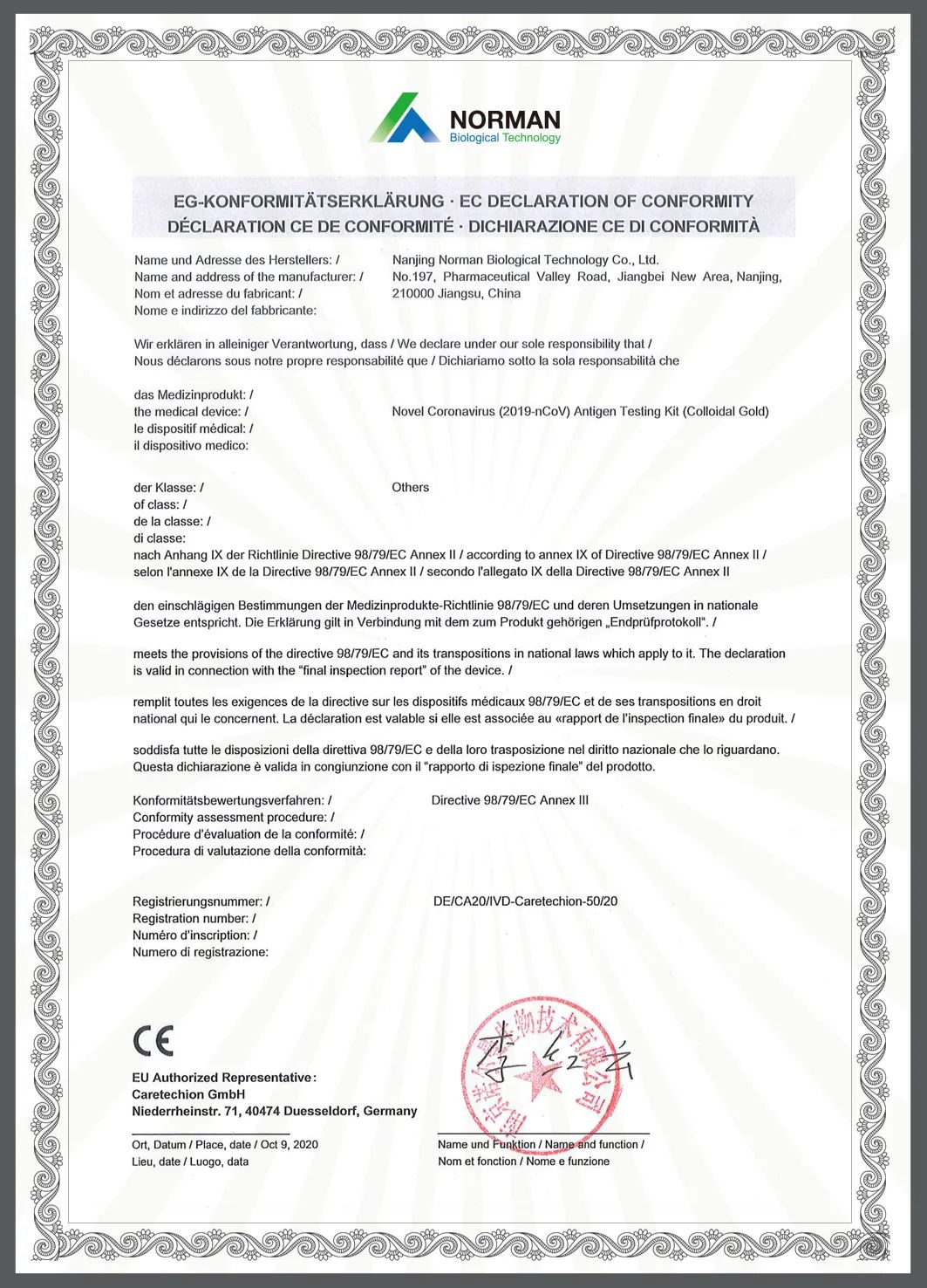 热烈庆祝南京诺尔曼生物技术股份有限公司新冠抗原检测试剂盒(胶体金法)顺利通过了德国保罗埃利希研究所(德语:Paul-Ehrlich-Institut)性能验证!